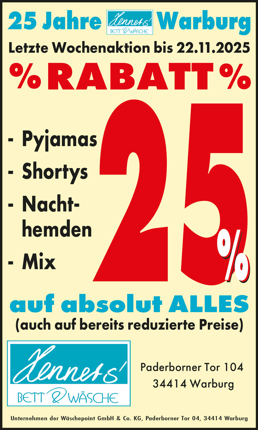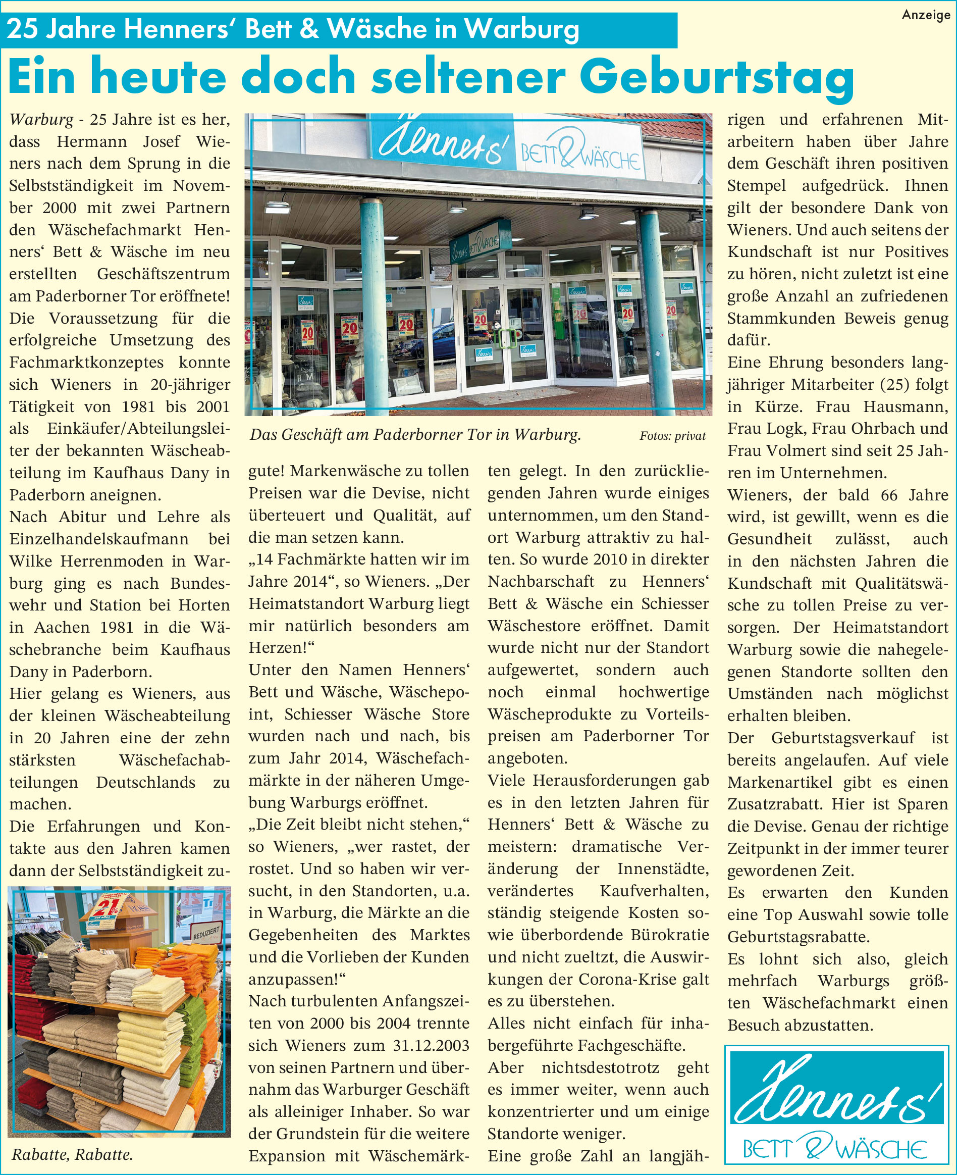 25 Jahre Henners´ Bett & Wäsche in Warburg